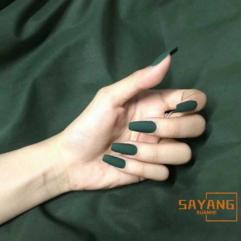 Sayang 24pcs Europe And The United State Beam Dark Green Pure Color Matte Long Ballerina Shape Fake Nails With Glue For Girls Shopee Philippines
