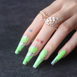 Amazon Com Campsis Glossy False Nails Jelly Green Coffin Nail Art Clip On Nails Pure Cover Full Cover Nails Fashion Acrylic Press On Nails For Women And Girls 24pcs Beauty